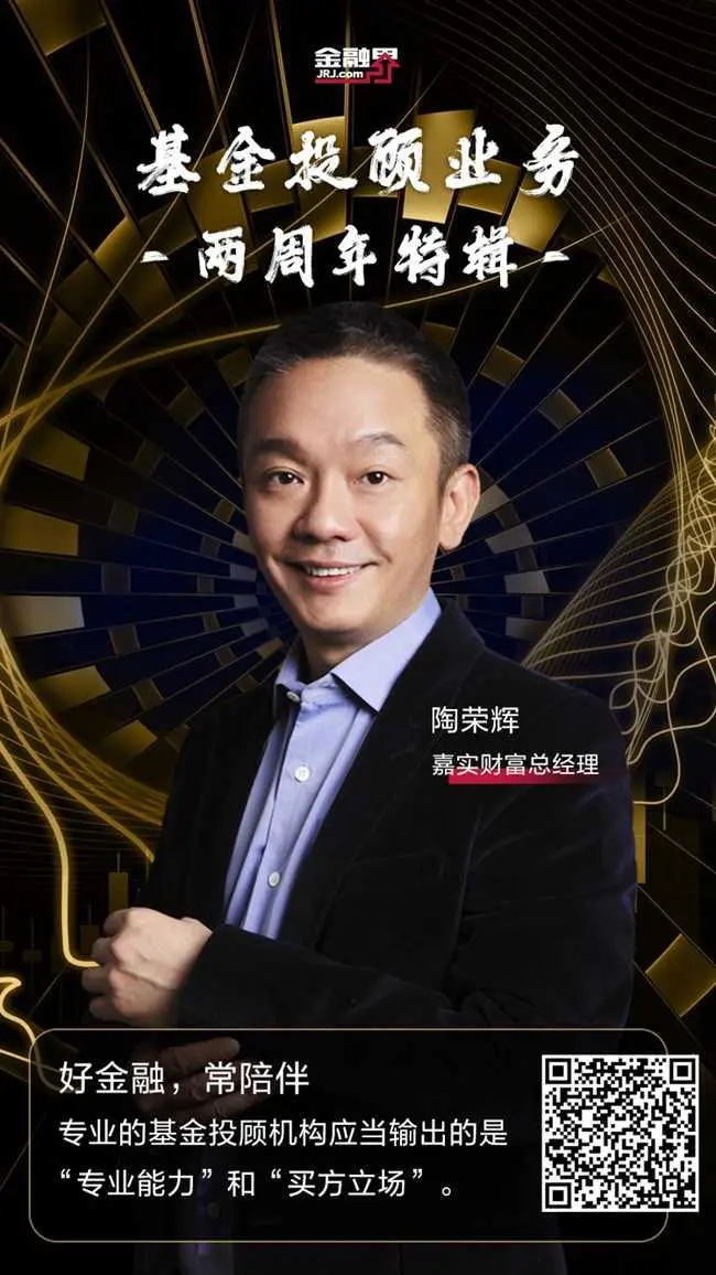 据证监会新闻发布会数据整理,目前已开展业务的公募基金投顾试点机构,合计服务客户账户资产逾500亿元,共计服务投资者约250万户。从首批获颁牌照的5家试点机构的业务开展情况来看,他们都依托于自身优势交上了一份答卷。值此两周年重要时间窗口,金融界推出“基金投顾业务两周年特辑”,本期特邀嘉宾嘉实财富总经理陶荣辉分享嘉实财富在财富管理转型中的点滴努力,以及在公募基金投顾业务中对于“好金融、常陪伴”价值主张的具体实践。