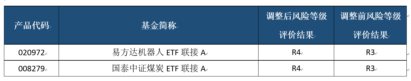 公募基金风险等级变化一览表: