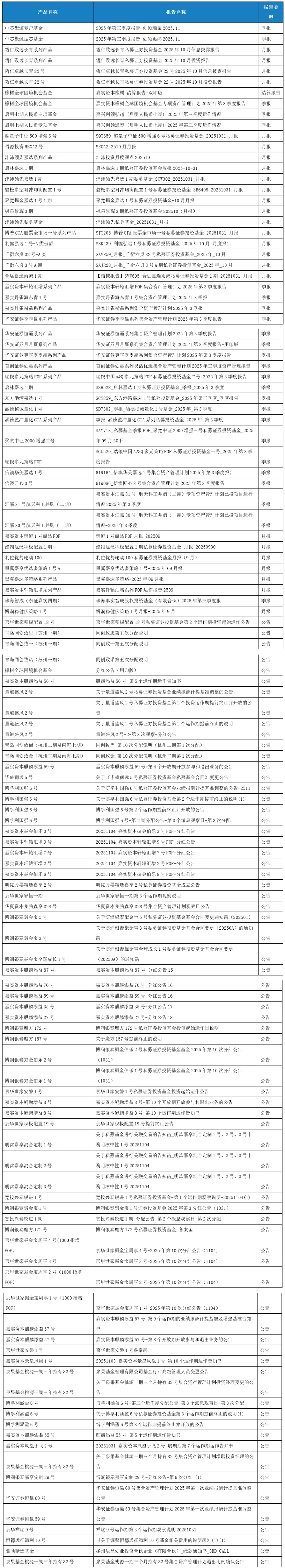 关于我们 >> 网站公告 >> 信息披露提醒2025.11.07 信息披露提醒2025.11.07 2025-11-07 尊敬的投资人: 以下产品信息已发布,请您登录会员中心或嘉实财富APP查看,或咨询您的理财师。