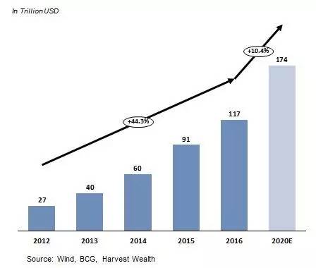 机构投资者占到中国投资总额的40%(全球:60%),未来,随着保险公司资产基础不断增长、银行资金管理增量需求、社会养老金“三大支柱”的完善,资产管理市场期望机构投资者的更大贡献。