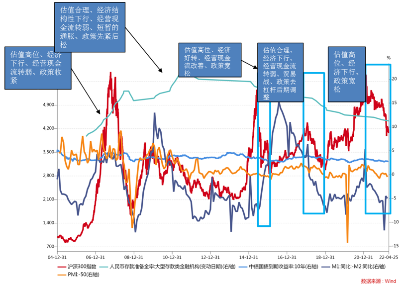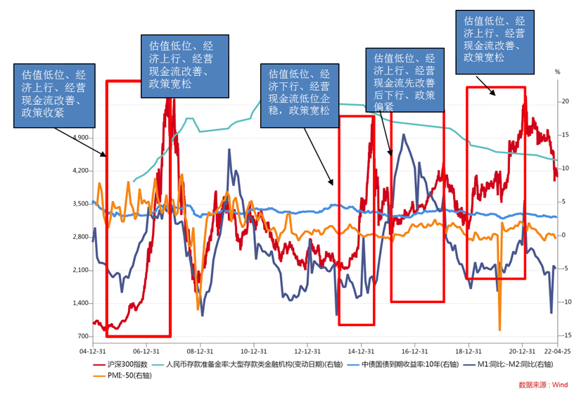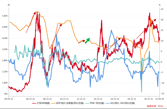 事实上,如果把目光聚焦到当时环境下,可以看到经济周期和沪深300指数的走势还是基本吻合的。