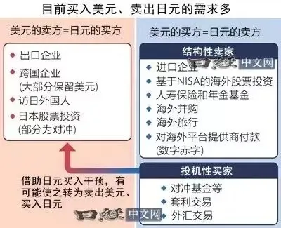 自从2022年美联储宣布启动加息以来,美日之间的利差其实是在不断扩大,这也为日元贬值带来了持续性的压力。目前,美国的利率水平已经来到了5.25%~5.5%的区间,而日本央行直到今年才首次实施了加息,美国与日本之间的利差较大,且呈现出差距越来越扩大之势,这也就导致了大量资金过往持续布局在日元贬值的方向。从日元外汇交易的供需双方看,如下图所示,一些投机性的美元买家,例如对冲基金、套利交易、外汇交易等,可能是持续的日元卖出方,这也为日元的持续走弱带来了相当的压力。