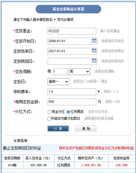 拿定投一只偏股型基金举例,假如从2009年年初开始每周定投500元,一年累计定投2.6万元,假定年化收益约为21.28%,一直定投至2021年1月,累计定投30.7万,期末总资产可达到102.8万元。因此,实现上面的目标对于定投而言大概率并非难事。
