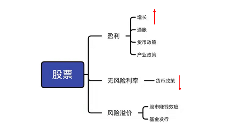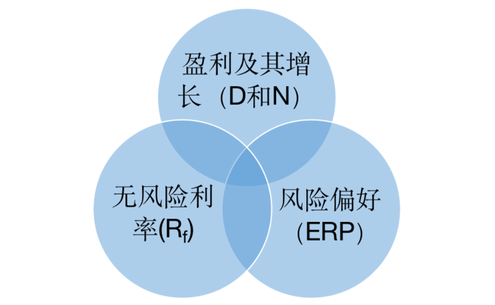 结合上述分析,我们可以概括一下(图2),分析股票资产的核心要点,最重要的是盈利大小及其增长,其次是无风险利率,其次是风险偏好。