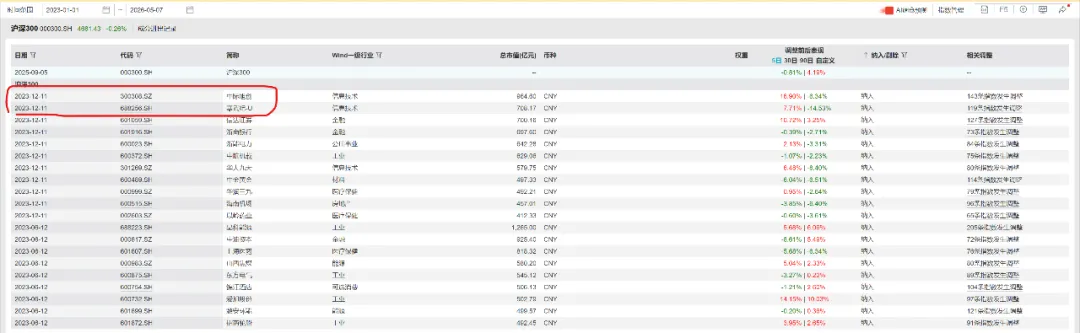 实际上,2023年12月,寒武纪和中际旭创就已经进入了沪深300。