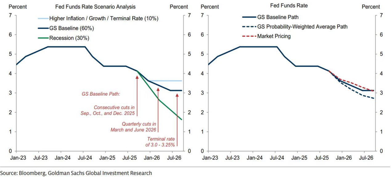 图3:高盛预测美联储的利率走势,预计2026年将有2次降息