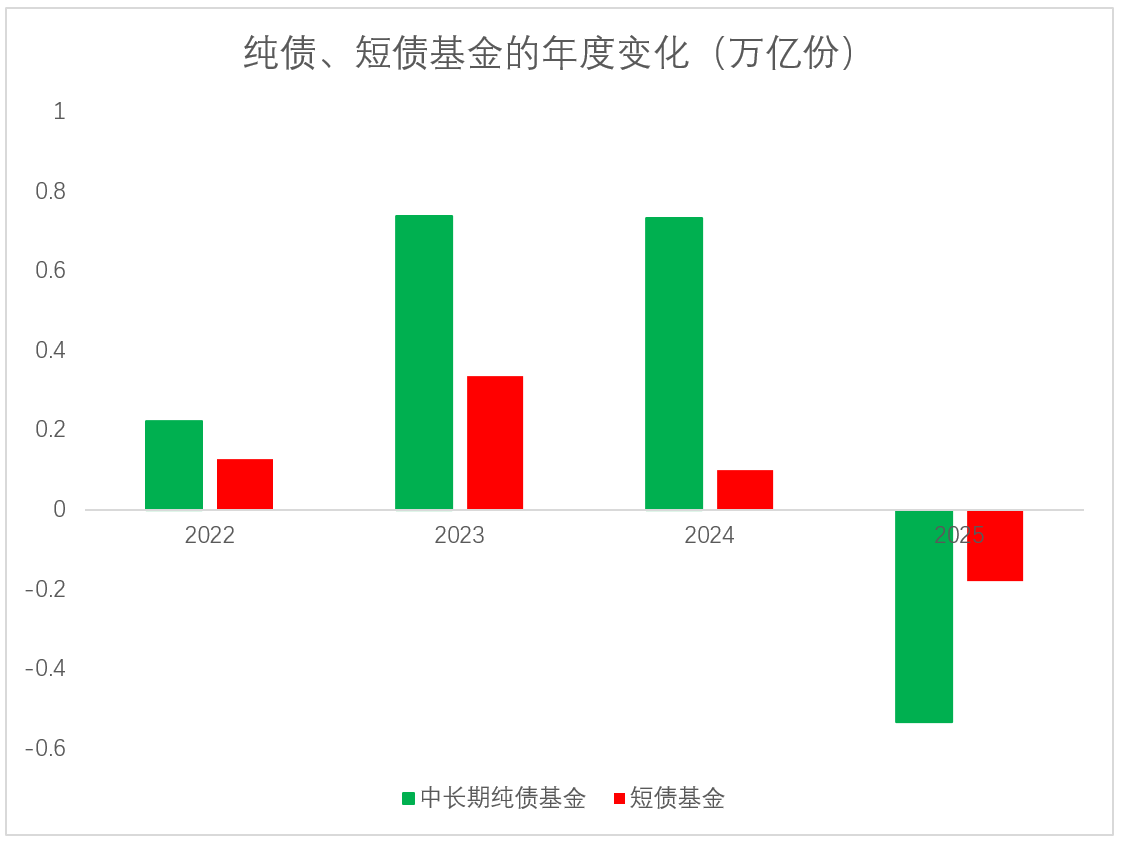 图:纯债基金、短债基金份额的年度变化 来源:Wind。
