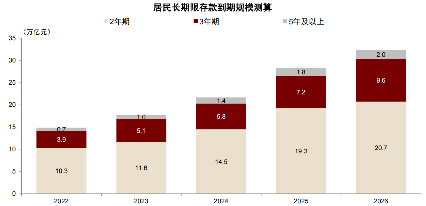 图:居民长期限存款到期规模测算 图片来源:中金公司。