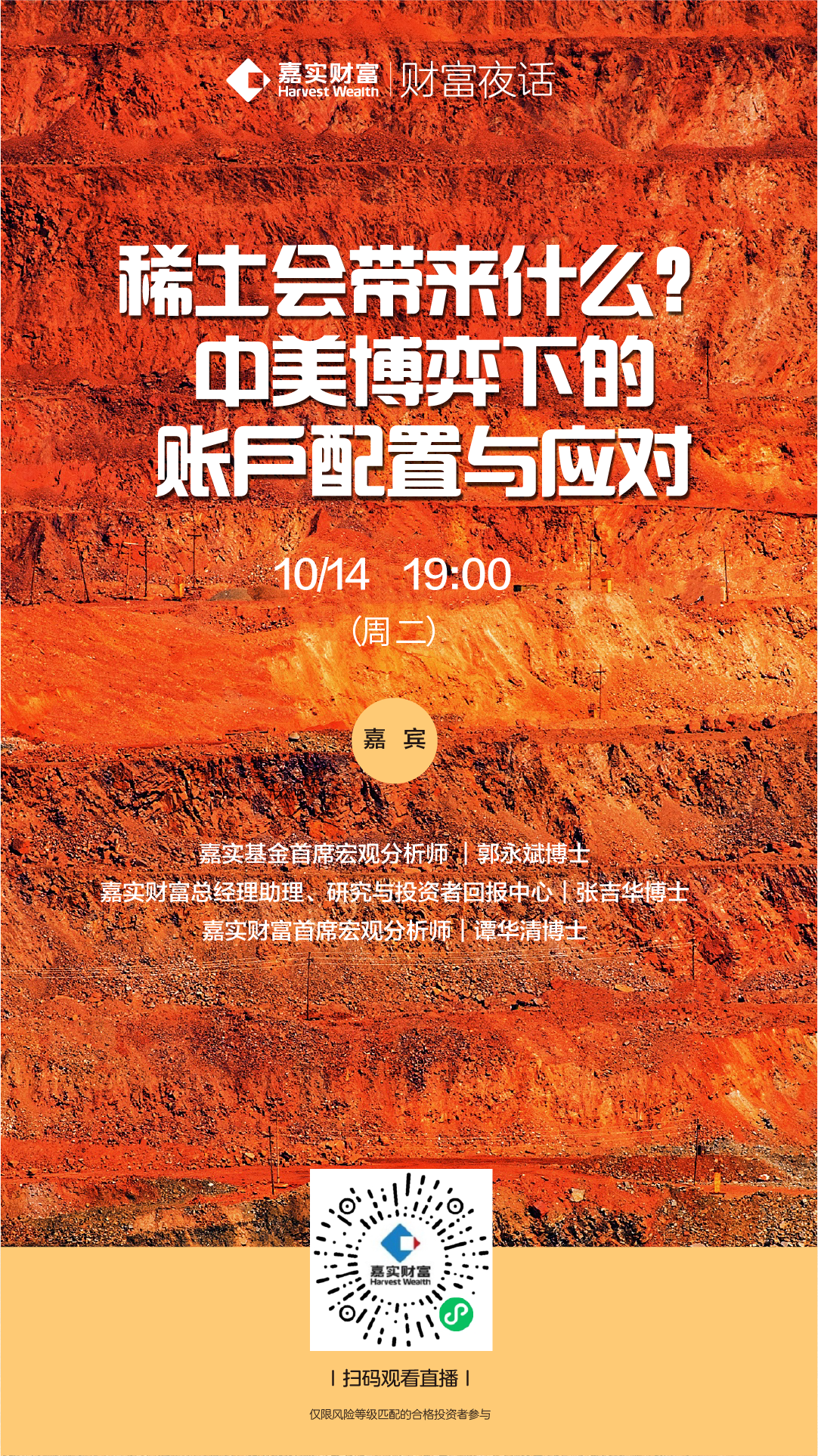 本次嘉实财富“财富夜话”栏目聚焦中美经贸关系波动下的稀土管制升级事件,邀请嘉实基金首席宏观分析师郭永斌博士、嘉实财富总经理助理、研究与投资者回报中心总经理张吉华博士,围绕稀土管制背景与特点、对中美关系及市场的影响,以及投资者账户思维下的应对策略展开讨论,同时回应投资者提问。