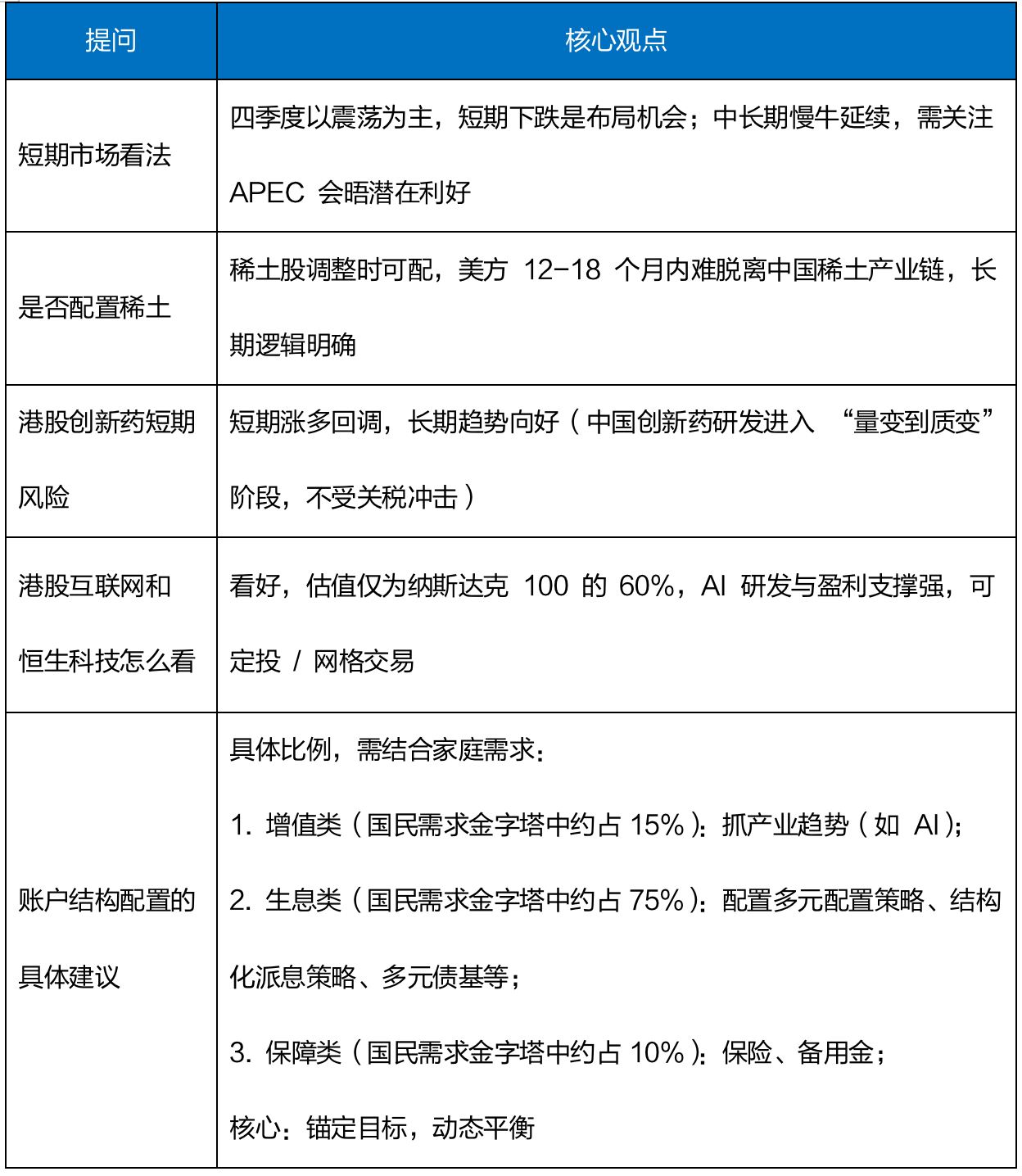 “稀土管制是中方被动反制,短期不改变中美谈判趋势,中长期不冲击慢牛格局”,核心建议投资者以“账户思维”为核心:锚定家庭财务目标,借市场波动优化风格与工具配置(增配公募、结构化工具、高股息资产),中长期需要注意利润主要来自美方的企业所面临的风险,把握自主可控与低估值机会,在中美长期博弈中实现财富稳健增值。