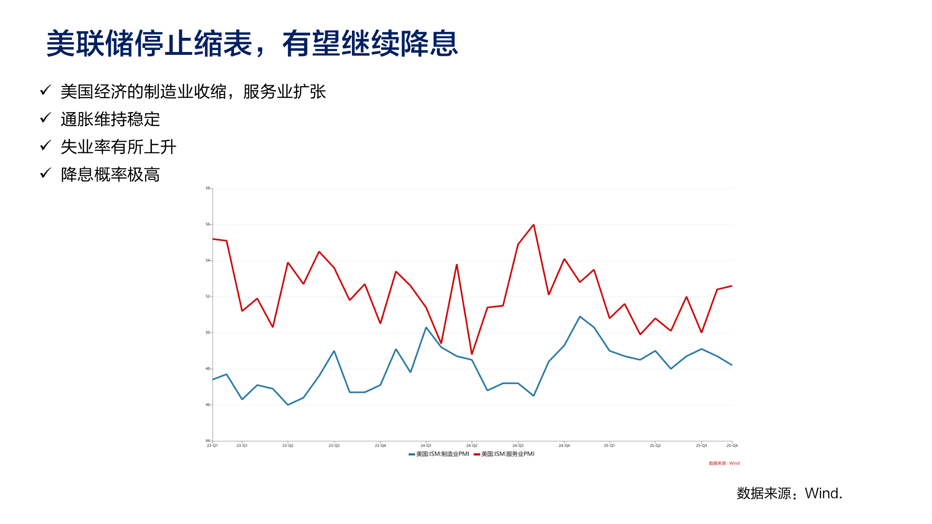 2. 美国经济状况:制造业收缩已持续九个月,失业率上升,劳动力市场转弱,但服务业仍在扩张,消费者信心和预期改善,目前难以判定美国进入衰退,需持续观察。